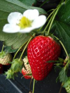 蜜蜂さんもいちごの蜜を吸っています。