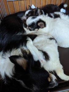 親離れの練習中ですが、自分たちだけで平気にすごしています。そして、ダリアママが来ると‥お乳に突撃!!!