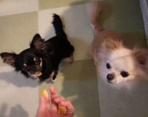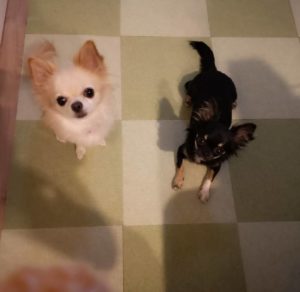 みかん食べようとしてると、座って待ってる2匹です🤭