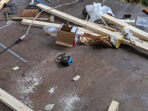 マルノコやドリル、必要な道具は私が揃えて、父はホームセンターから材料をトラックに積んで買い出しに行ってくれてます。