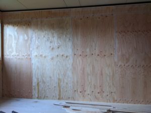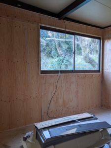 内装の壁紙を貼るために下地のテープを貼り完了。あとはフローリングをしてロフトベッドを設置をして、犬たちのサークルを作ります。その後、壁紙ですね。犬たちが快適に過ごせる空間を完成させるにはまだまだかかりますね。頑張ります!!