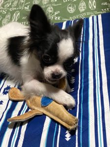 今晩は。スミレが我が家に来て一カ月が経ちました。食欲旺盛、好奇心旺盛とっても元気です。チョッピリヤンチャさんで甘えん坊です。お座り、伏せが出来るようになりました。最近は私を追いかけて階段が登れるようになり、怪我をしないか心配です。お留守番もトイレも大丈夫です。良いご縁を家族一同感謝、感謝で一杯です。大切に大切に育てますので安心して下さい。