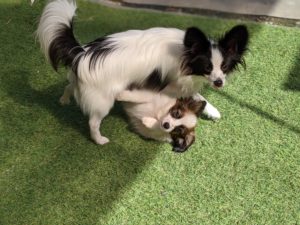 いつも誰かがお散歩していると…ひっつき虫&お邪魔虫なんです(笑)