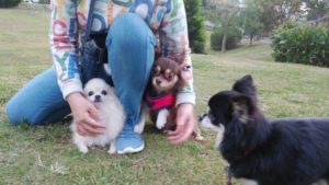 歩いて15分くらいの緑豊かな公園に遊びに行き、お散歩仲間に遭遇!ナズちゃん、絶賛人見知り&犬見知り発揮中!😅