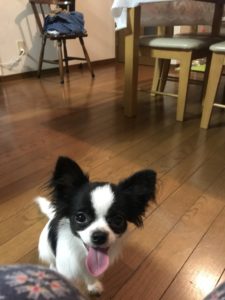 長男が一生懸命、フセと座れ、を教えています(haha)