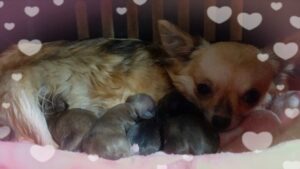 そして、ピッピのお産が始まりました。交配をして60日、4頭の赤ちゃんが元気に誕生しました。🍀