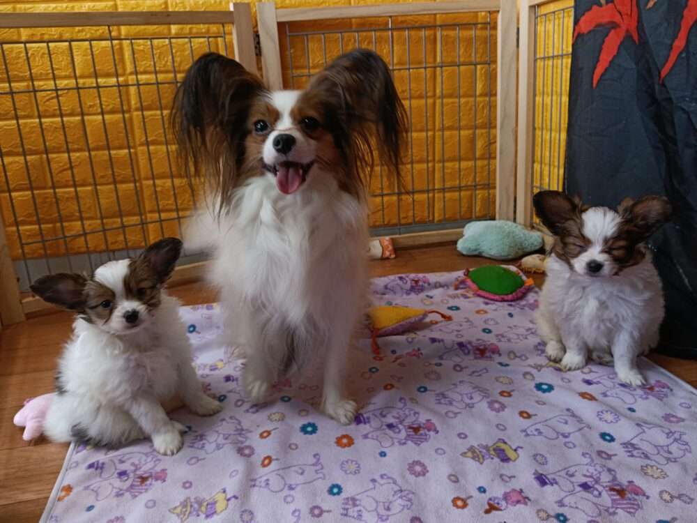 産後でコートが抜けてますが、耳毛はゴージャスになりそうです。紅葉ちゃんの娘なので、これから伸びると思います。